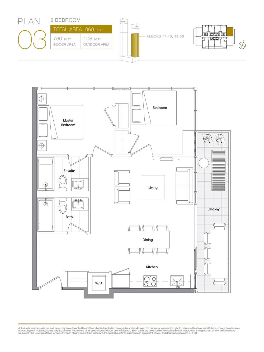 760 Sq Ft Interior + 108 Sq Ft Balcony