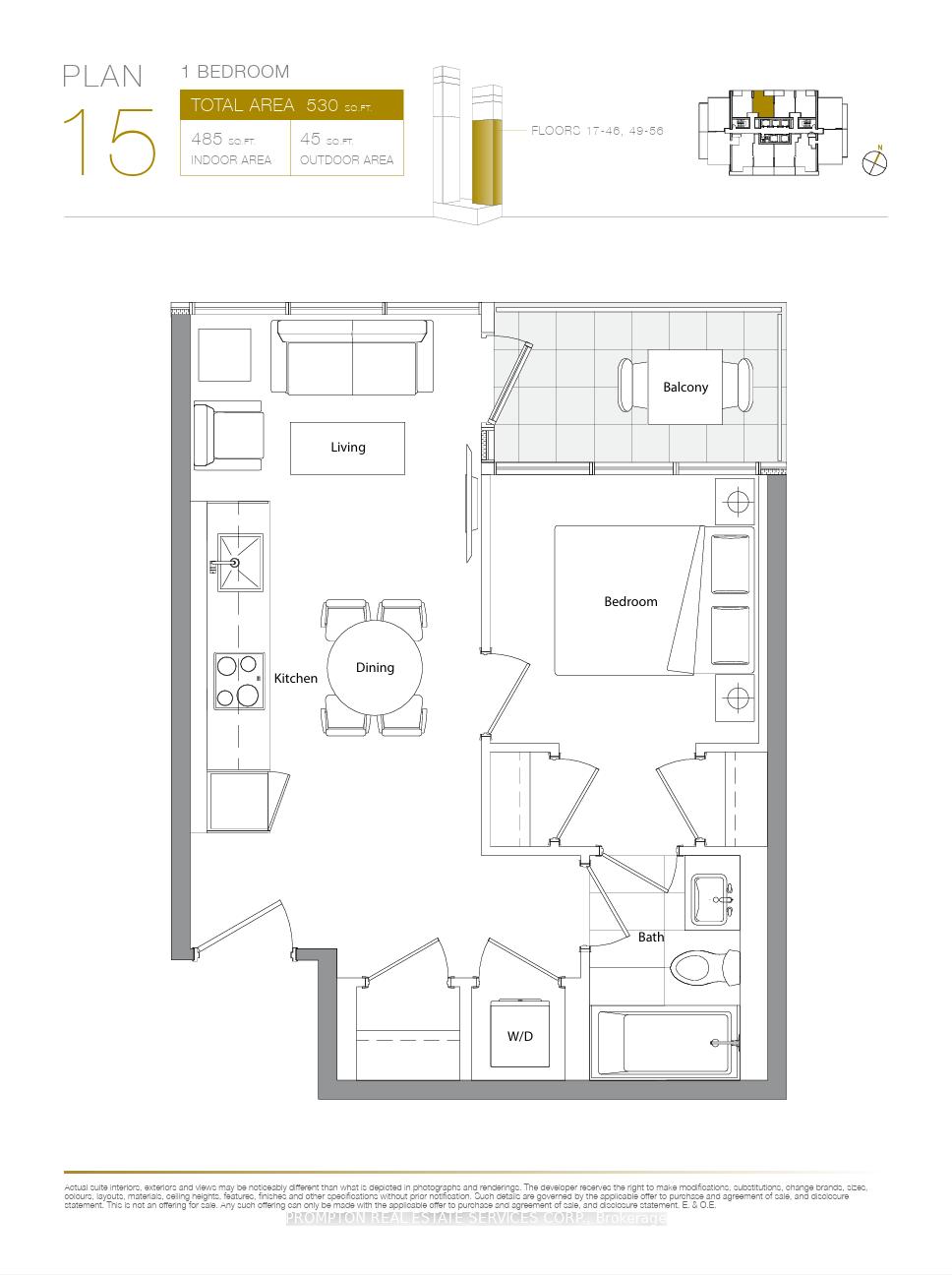 485 Sq Ft Interior + 45 Sq Ft Balcony