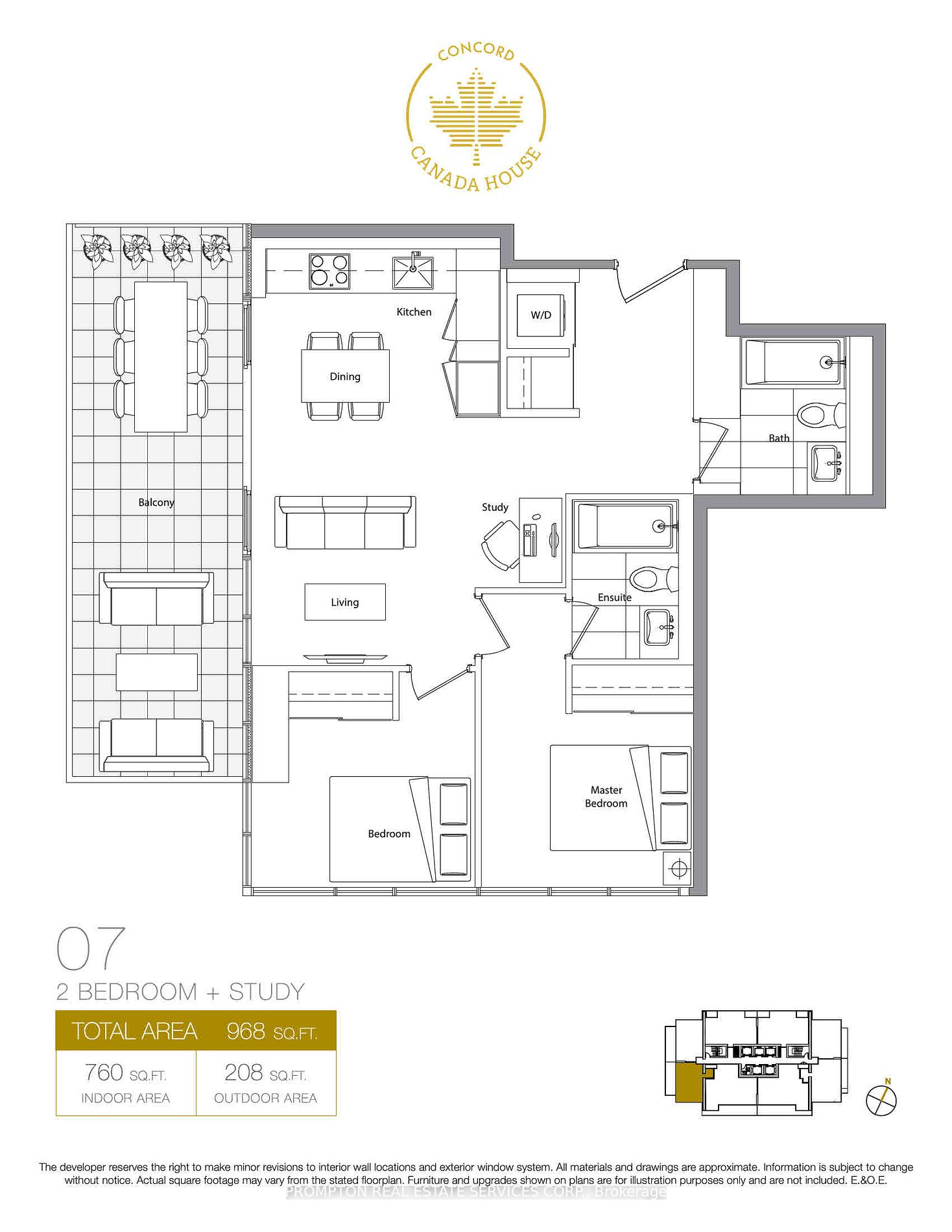 760 Sq Ft Interior + 208 Sq Ft Balcony