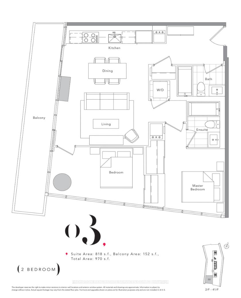 818 Sq Ft Interior + 152 Sq Ft Balcony
