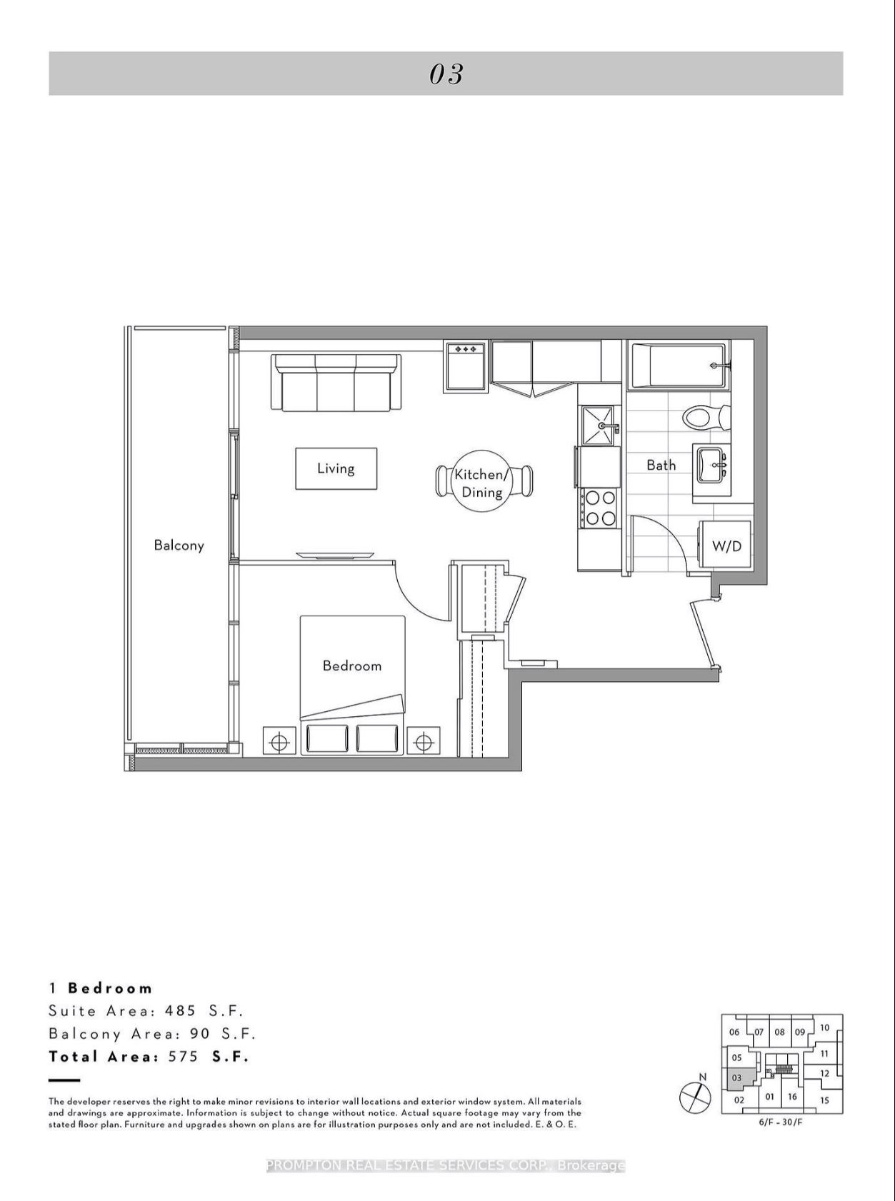485 Sf + 90 Sf Balcony As Per Floorplan