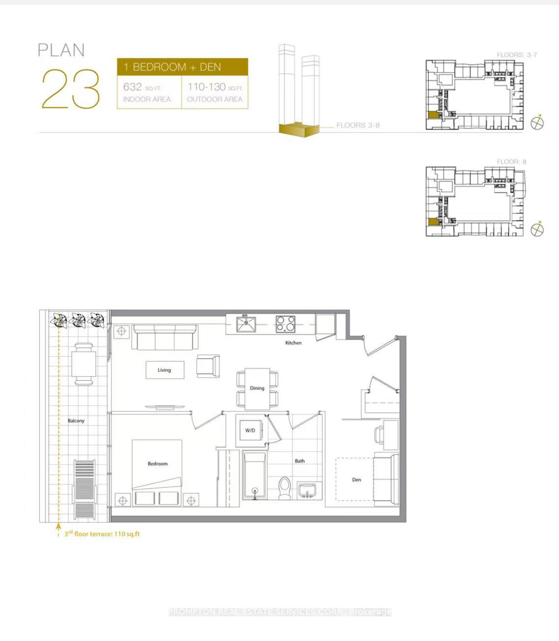 632 Sq Ft Interior + 115 Sq Ft Balcony