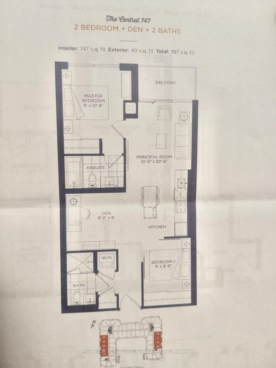 747 Sq Ft Interior + 40 Sq Ft Balcony