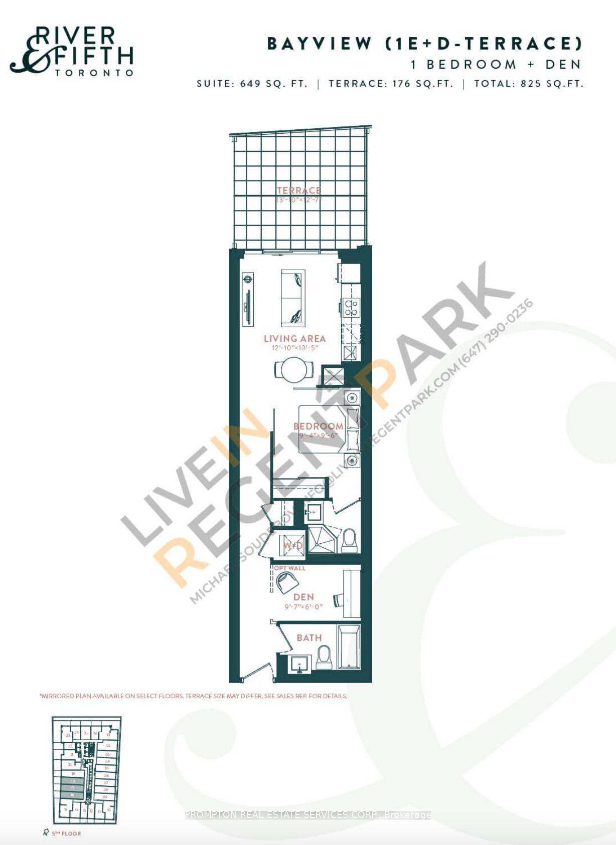 649 Sq Ft Interior + 176 Sq Ft Balcony