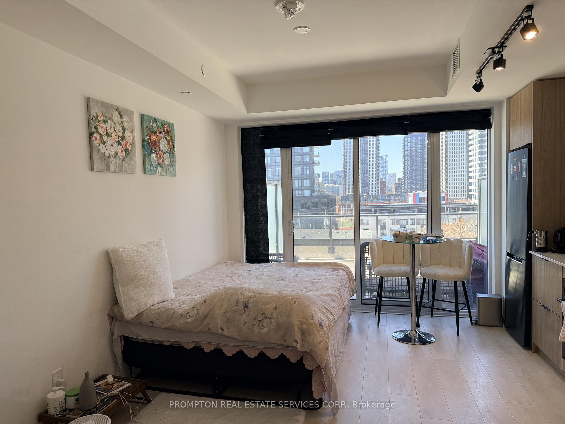 Two-year-old lifestyle condo featuring high-end and modern interior design! This 649-square- foot unit + 176 sqft TERRACE! offers a bright open-concept layout with floor-to-ceiling windows, featuring 1 bedroom + den and 2 full bathrooms. The primary bedroom includes an ensuite. The den can easily function as a second bedroom or a home office. Premium matte black appliances, and smart home integration. The building offers resort-style amenities, including 24/7 concierge service, a coworking space, a sports lounge, a gym, and a rooftop outdoor pool with incredible city views-the only condo in the area offering this feature. Perfectly located just a 2-minute walk from TTC access, with easy connections to the Don Valley Parkway, Gardiner Expressway, and the historic Distillery District. It provides an ideal blend of luxury, convenience and urban lifestyle for families and professionals.