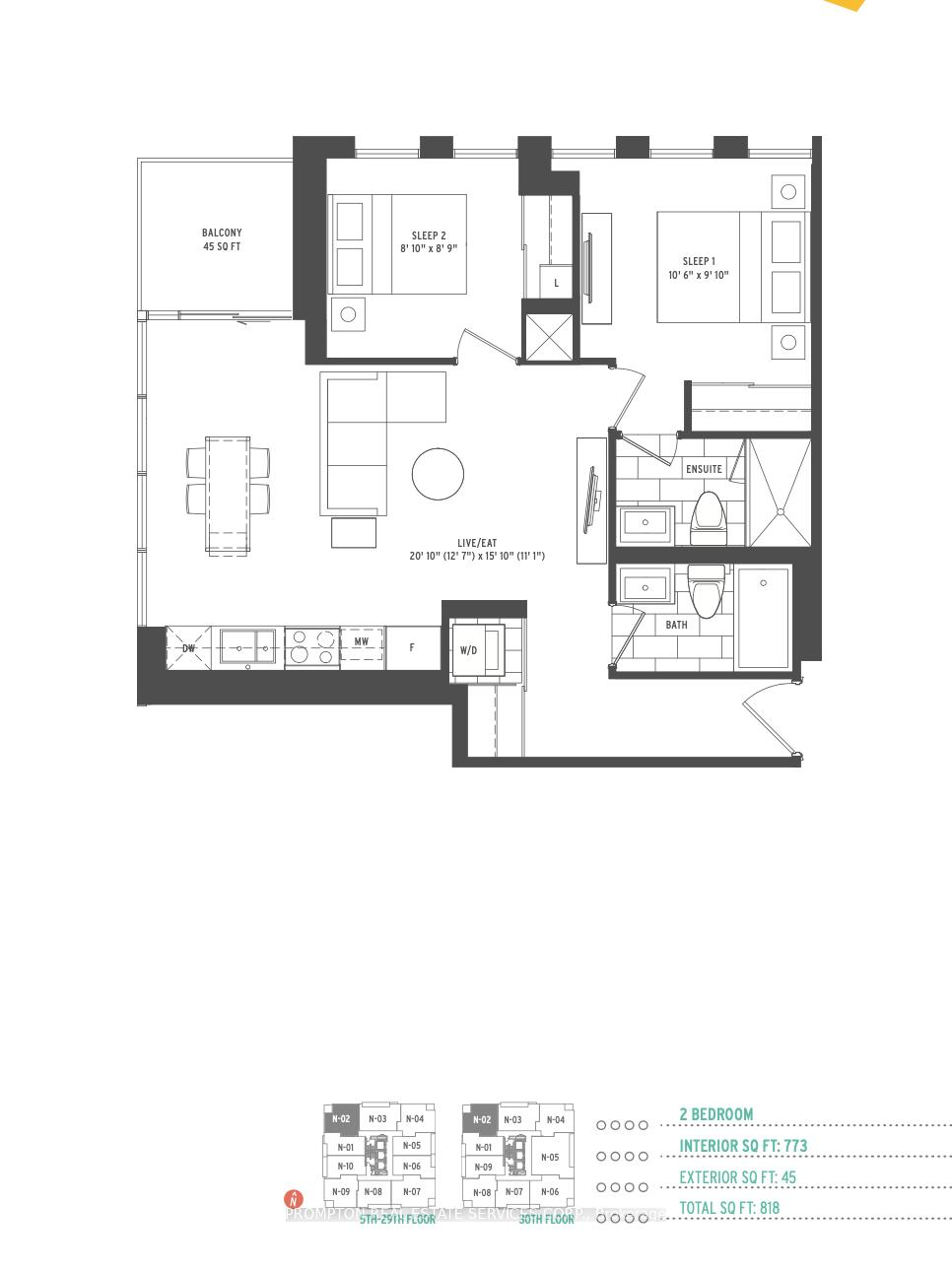 773 Sq Ft Interior + 45 Sq Ft Balcony
